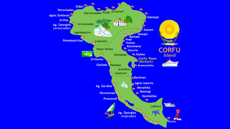 Η Κέρκυρα είναι ένα από τα πιο όμορφα και δημοφιλή νησιά της Ελλάδας. Λόγω της δυνατής ιστορικής σύνδεσης της με την Ευρώπη , ήταν ένα από τα πρώτα ελληνικά νησιά που είχαν τουρισμό. Βρίσκεται στην βορειοδυτική πλευρά της χώρας και έχει μια κοσμοπολίτικη αίσθηση συνδυασμένη με ένα ιδιαίτερο παραδοσιακό χαρακτήρα. Η Παλαιοκαστρίτσα,το Σιδάρι,η Κασσιώπη και η Αχαράβη είναι όμορφα τουριστικά μέρη στην βόρεια πλευρά του νησιού , ενώ όλο το νησί είναι γεμάτο με απομονωμένα και γραφικά χωριά με πολλά αξιοθέατα.
